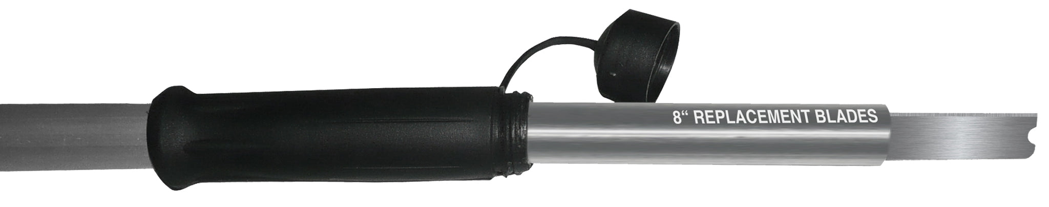 Aluminum handle, protected blade to prevent cuts. Replacement blades fit conveniently in the handle to eliminate wasted time searching for blades.